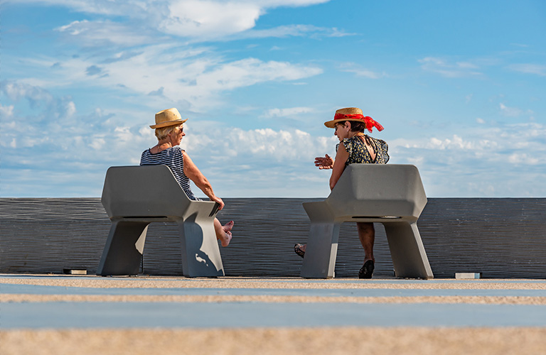 Escofet a joué un rôle essentiel en aménageant le mobilier urbain le long de la promenade du front de mer. Nous avons installé la collection de bancs Kelly, conçue par Marc Aurel, ainsi que des poubelles sur mesure dotées de cendriers, réalisées avec la technologie UHPC. Ce mobilier, a permis à l’architecte d’aménager cet espace public plus accueillant et fonctionnel, favorisant ainsi la réintégration harmonieuse de la promenade dans son environnement urbain.