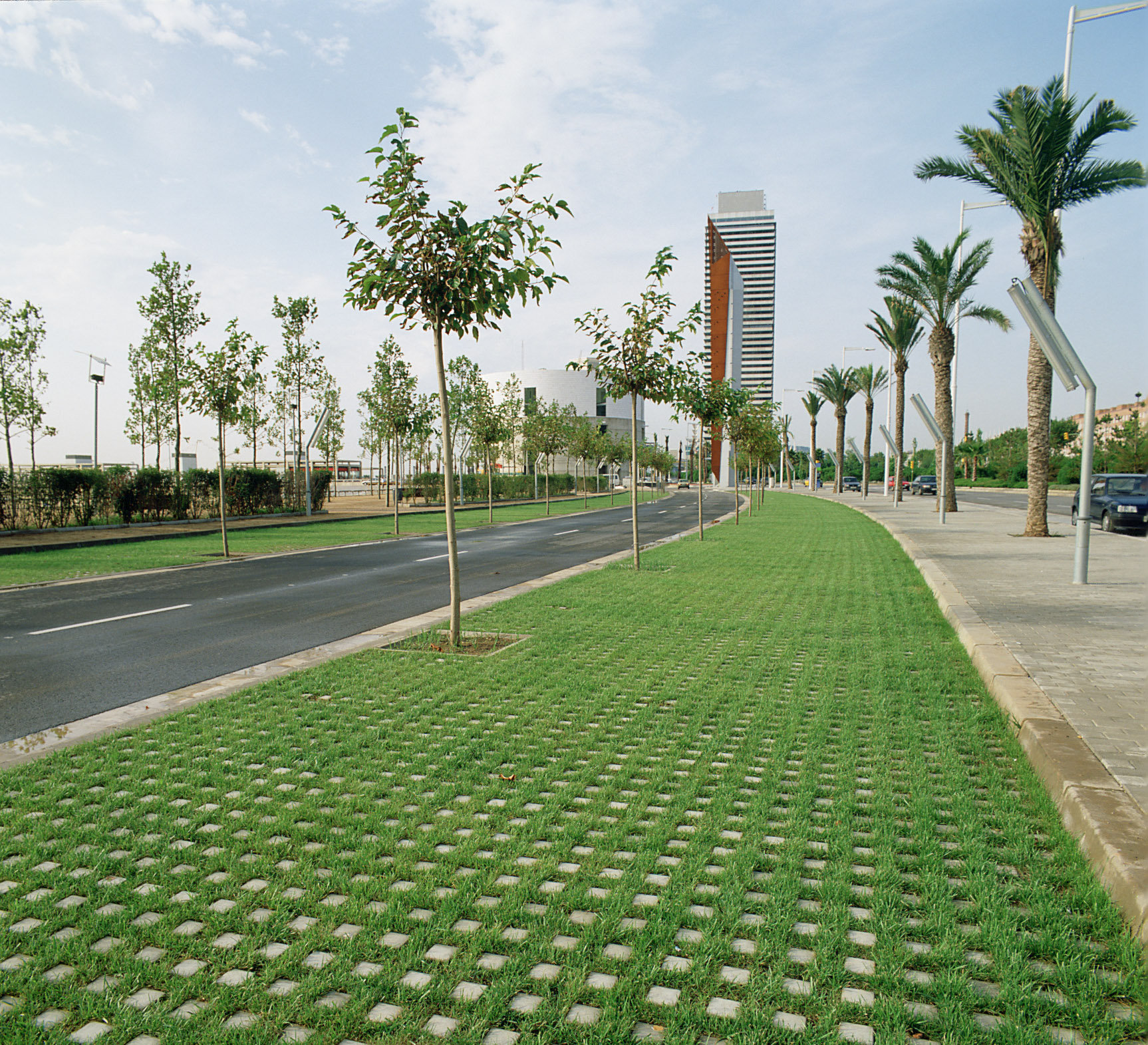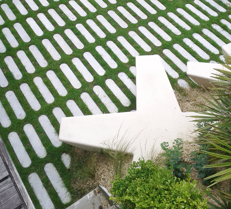 –Dalles Evergreen (gazon) qui permettent de consolider toutes les surfaces carrossables et de les combiner de façon harmonieuse avec les espaces verts. En effet, ce dallage contribue à un bon équilibre écologique dans le respect du développement durable.